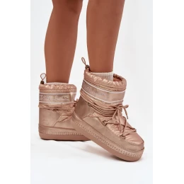 Zlaté dámské sněhule O’Neill Lisa High s měkkým vnitřním zateplením („kožíšek“), které zajišťuje pohodlí a teplo během zimních dní. Boty kombinují design „slip‑on“ s klasickým šněrováním, díky čemuž se dají pohodlně nazout a zároveň dobře přizpůsobit noze. Platformová podrážka (cca 2 cm) a robustní konstrukce poskytují stabilitu na sněhu a izolaci od chladu.