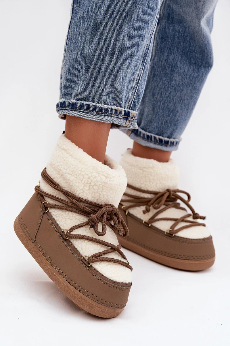 Dámské sněhule s beránkovou podšívkou na zavazování tmavě béžové Belira