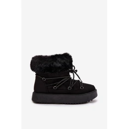 Dámské sněhule s kožíškem a šněrováním Sarivie – černé
