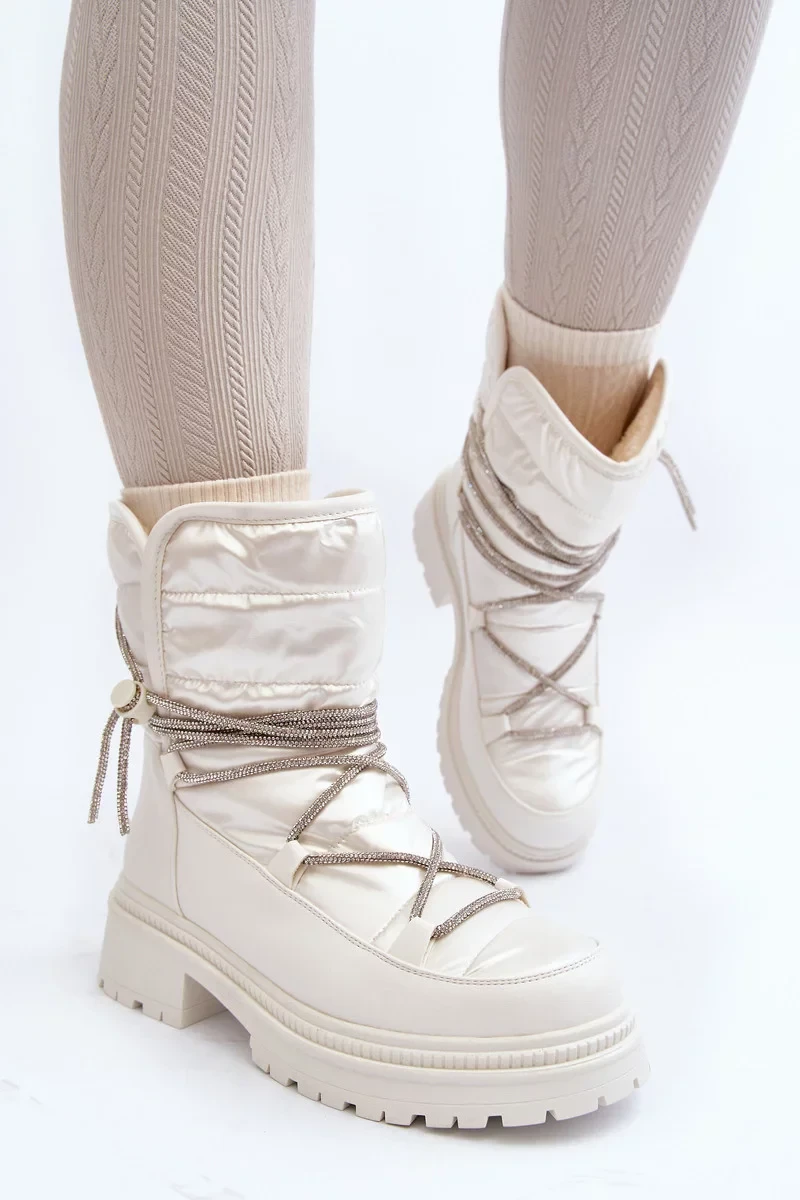 Dámské sněhule s ozdobným šněrováním, bílá Rilana