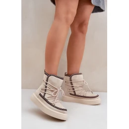 Dámské Sněhule S Výšivkou Na Platformě Světle Béžové Naleris