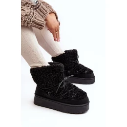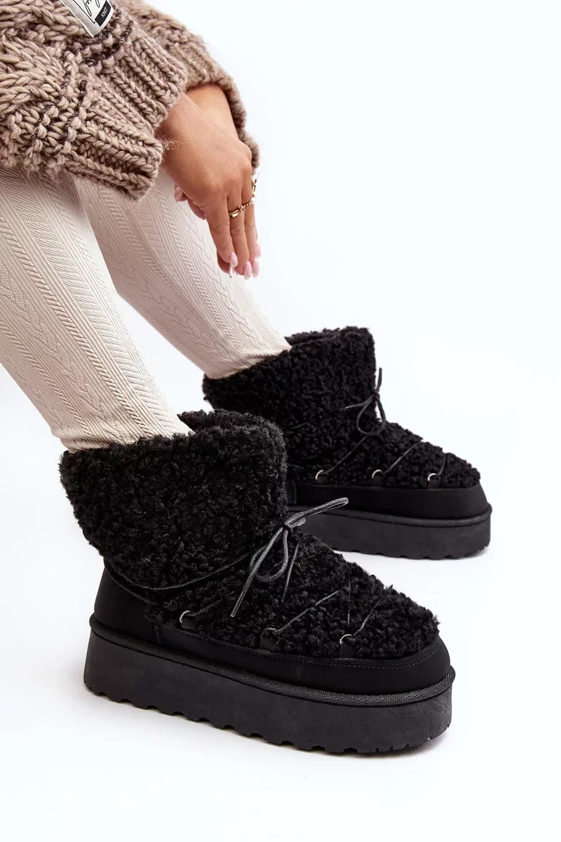 Dámské šněrovací boty do sněhu se silnou podrážkou, černé Loso