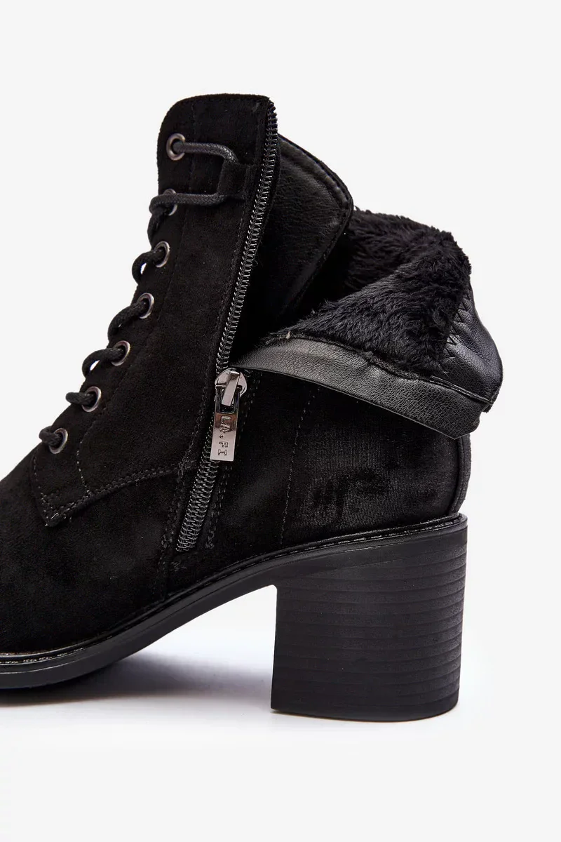 Dámské šněrovací kotníkové boty na nízkém podpatku černá Serellia