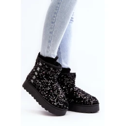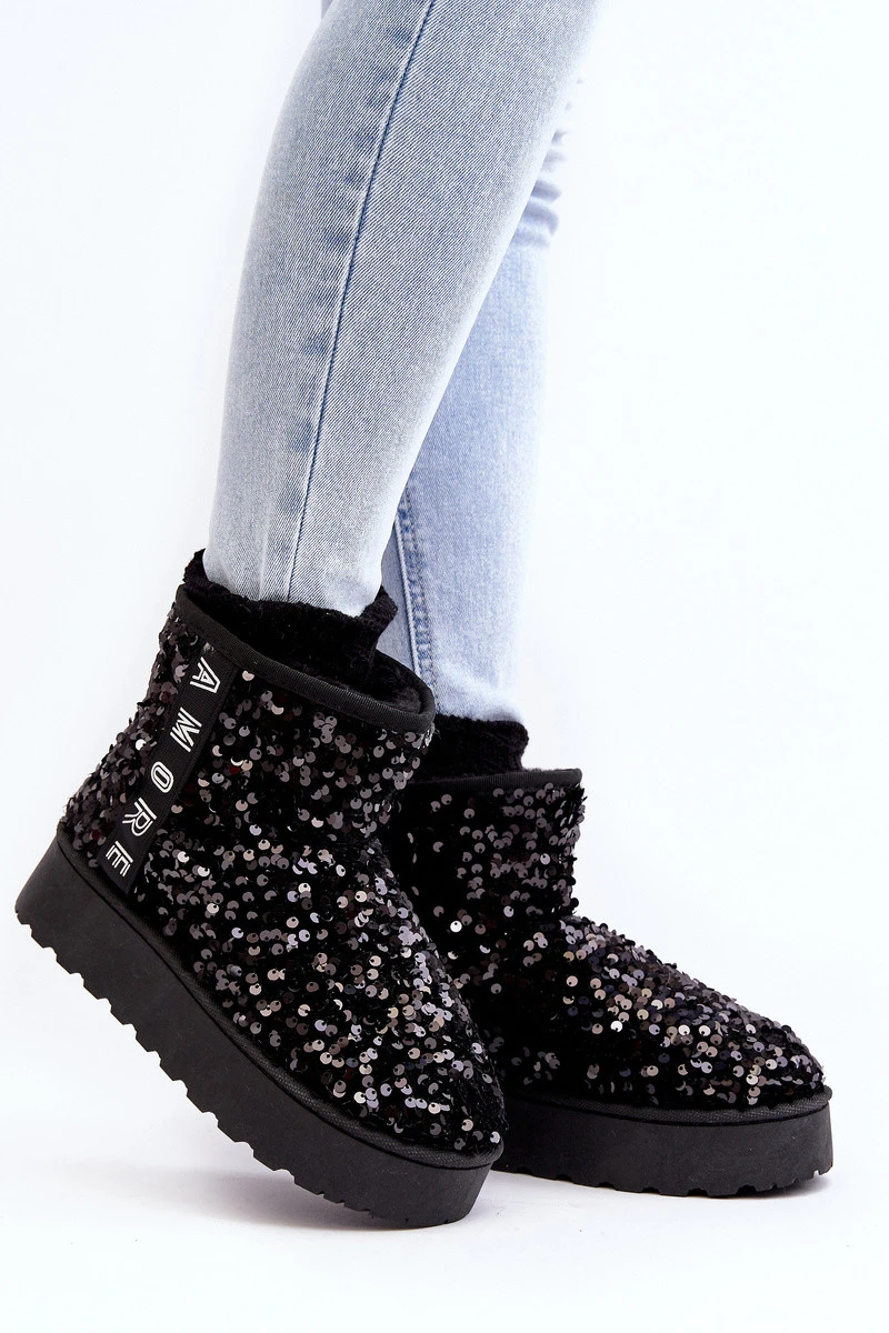 Dámské sněžné boty s platformou zdobenou třpytky černé Silmo
