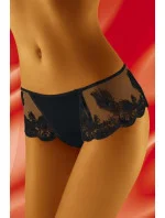 Wol-Bar Oshi - velmi krásné a elegantní kalhotky - brazilky značky Wol-Bar. Dostupné v černém i bílém provedení. Plný střední díl, boky z půsvitné černé krajky s pěkným vyšitým motivem.