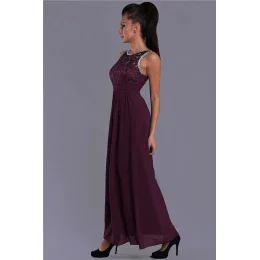 Dámské společenské šaty. Nádherné dlouhé šaty s krajkou v horní oblasti šatů, lemované kamínky. V pase je jemné řasení. Model je bez rukávů. Oblékání je velmi pohodlné a snadné, díky žabičkování v zadní části šatů. Tento model šatů můžete využít na jakékoliv společenské události, jako je například ples nebo večírek. Materiál, ze kterého jsou šaty vyrobeny je příjemný na omak. Kvalitní dámské šaty. Dámské značkové oblečení vyrobené pro EU.