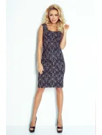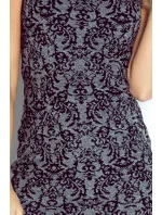 Dámské společenské šaty JACQUARD s květinovým vzorem bez rukávu šedé - Šedá / XS - Numoco