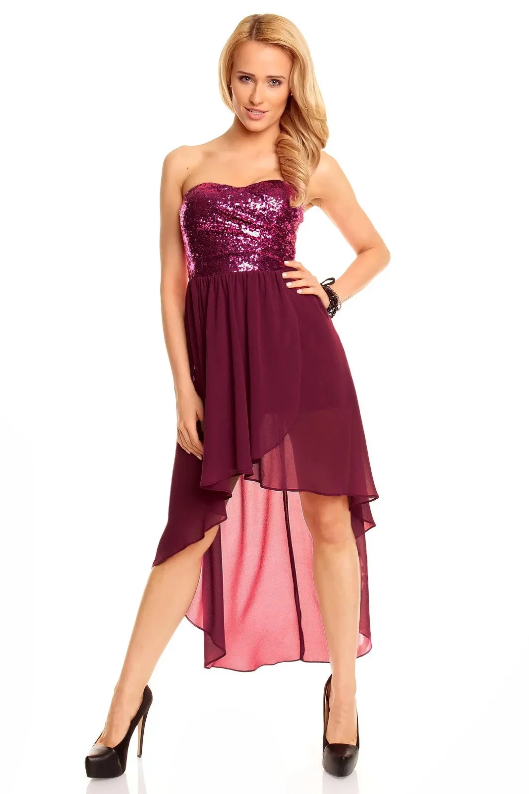 společenské a plesové flitrové dámské šaty s korzetovým výstřihem a s asymetrickou sukní. V šatech je v zadní partii skrytý zip, sukně je v sexy délce mini a je doplněna šifonovým doplňkem v asymetrické délce. Flitrové šaty jsou elegantní a působí luxusním dojmem, jsou proto vhodné především na plesy, nebo na párty, rauty a oslavy. V těchto flitrových šatech budete ve společnosti zářit a vy se v nich budete cítit skvěle.