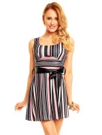Dámské společenské šaty s páskem pruhované - Černo-bílá - House Style