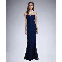 Dámské společenské šaty SOKY SOKA s krajkou a perličkami dlouhé tmavě modré