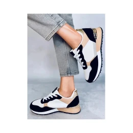 Dámské sportovní boty BB2216 Bílo-černo-béžová - Inello