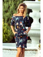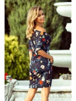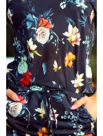 Dámské sportovní šaty s barevnými květy na tmavě modrém pozadí model 6330419