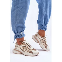 Dámské sportovní boty byly vyrobeny z kombinace eko kůže a síťoviny. Klasicky šněrovací model umožní správné přizpůsobení boty tloušťce nohy. Boty jsou upevněny na masivní platformě s plochou patou a protiskluzovou podrážkou. Vložka z látky zajistí pohodlné nošení obuvi. Tyto módní tenisky jistě skvěle vypadají v mnoha stylu! Při výběru velikosti se řiďte tabulkou velikostí.