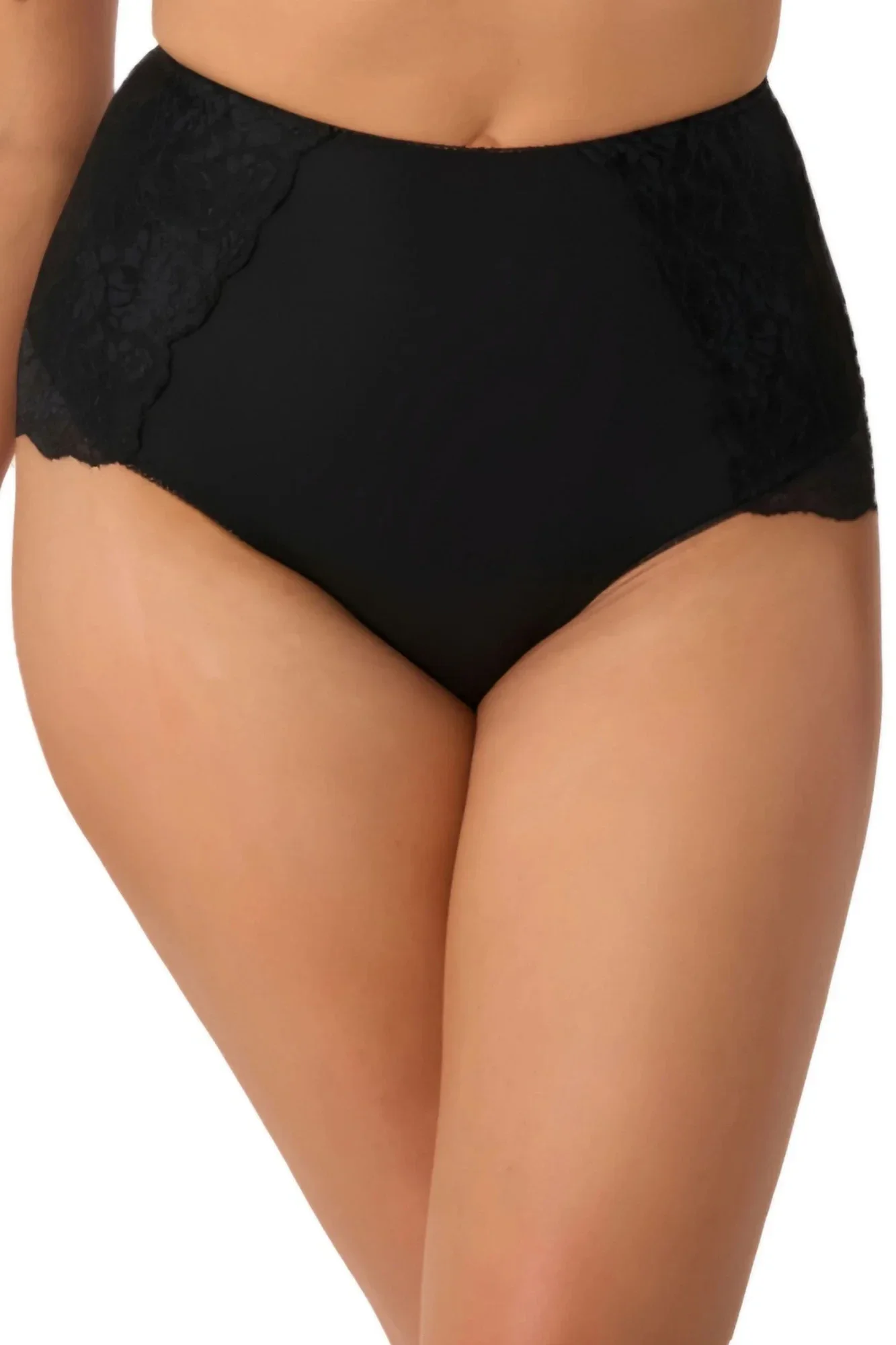 Dámské stahovací kalhotky 204 black BABELL - černá barva - z vysoce jakostního materiálu - vyšší pas - stahují břicho a boky - zdobené květinovou krajkou - plochá guma v pase