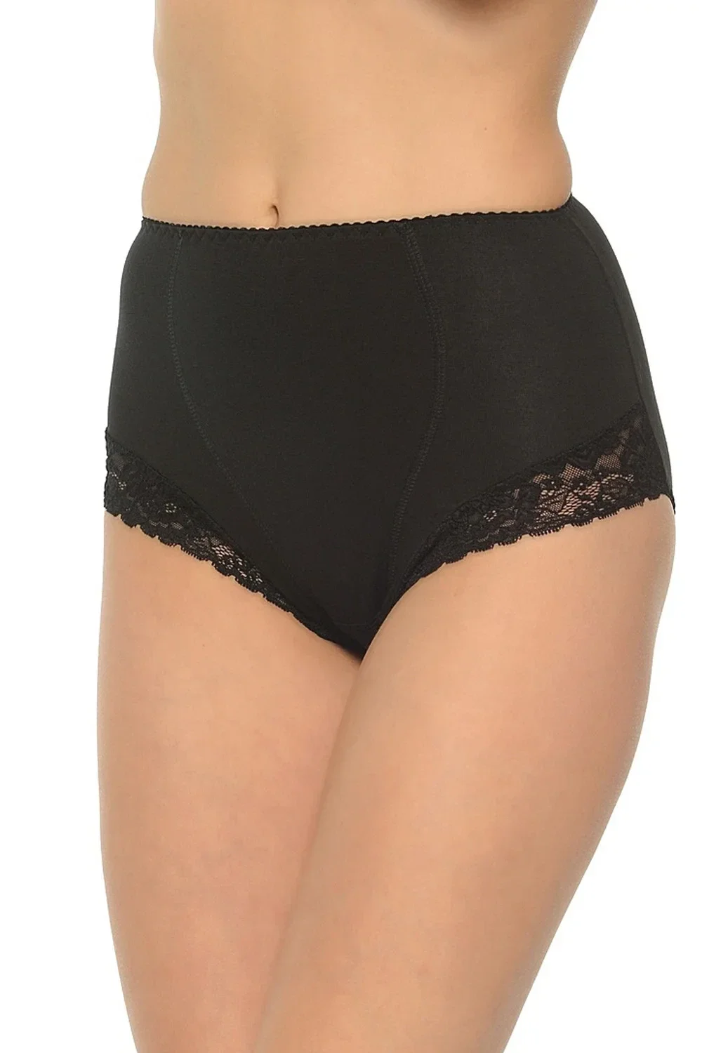 Dámské stahovací kalhotky Ela Mitex - černá barva - kalhotky mají lehce zvýšený pas - příjemný, pevný materiál - obepnou oblast boků a část bříška - elegantní design - nohavičky jsou lemované krajkou ve stejné barvě - pod oblečením nejdou vidět