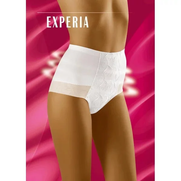 Dámské stahovací kalhotky bílé barvy. Přední díl zdobený vyšívaným tylem. Jsou vyrobené z jemného pevného mikrovlákna s velkým podílem elastanu, které tělo obepne a stáhne v oblasti boku a bříška. Bez bočních švu, v pase širší guma. Zpevňují a tvarují postavu. Kalhotky se nevyznačují pod přiléhavým oblečením. Bavlněný klínek.