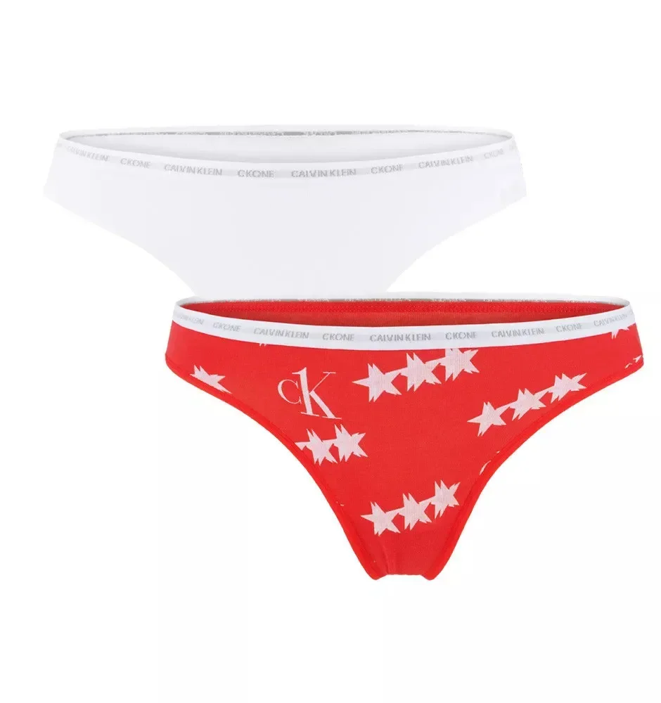 Dámské tanga 2pack QD3788E - W5H - Červená, bílá - Calvin Klein