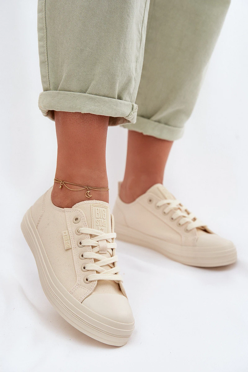 Dámské tenisky vyrobené z textilního materiálu značky Big Star jsou klasickou volbou na každý den. Nízký, šněrovací střih s nadčasovým charakterem zajišťuje pohodlné přizpůsobení noze a komfort při chůzi. Jsou to univerzální tenisky, které skvěle doplní casualové i sportovní outfity. Při výběru velikosti se řiďte tabulkou velikostí.