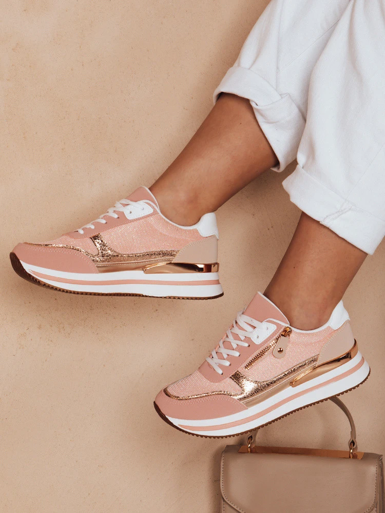 Módní dámské tenisky na silné podrážce, vyrobené z kombinace ekokůže a ekokůže. Uvnitř měkká látková stélka. Obuv zdobí zip a lesklé vsadky. Ideální volba pro ty, kteří ocení módu a pohodlí.