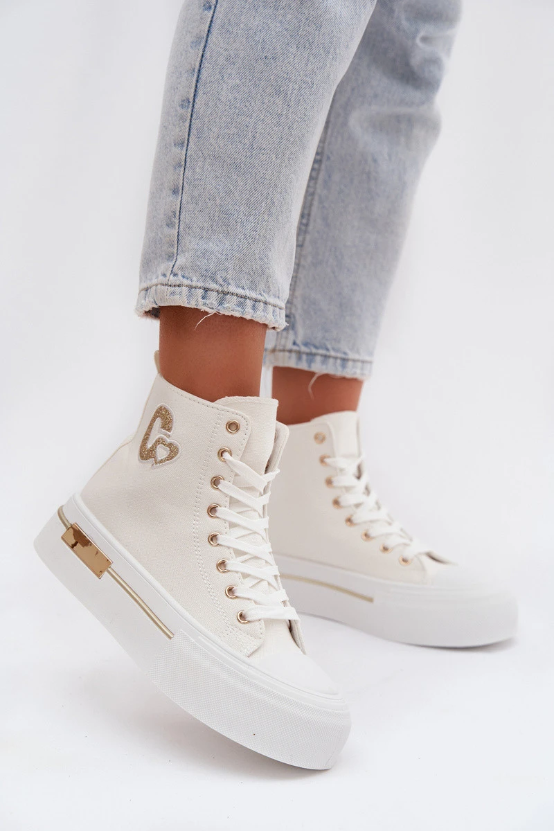 Dámské tenisky na masivní platformě jsou stylovým návrhem na každodenní nošení. Tlustá podrážka zajišťuje pohodlí a stabilitu a zlatý prvek na platformě dodává celku elegantní akcent. Po straně je ozdobná nášivka, která zdůrazňuje módní charakter modelu. Při výběru velikosti se řiďte tabulkou velikostí.