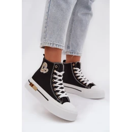Dámské tenisky na masivní platformě jsou stylovým návrhem na každodenní nošení. Tlustá podrážka zajišťuje pohodlí a stabilitu a zlatý prvek na platformě dodává celku elegantní akcent. Po straně je ozdobná nášivka, která zdůrazňuje módní charakter modelu. Při výběru velikosti se řiďte tabulkou velikostí.