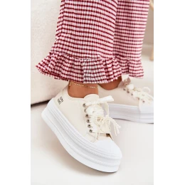 Dámské Tenisky Na Platformě S Dekorativním Šněrováním Béžové Tivora