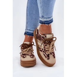 Dámské Tenisky Na Platformě S Dvojitým Šněrováním Leopardí Béžové Niteria