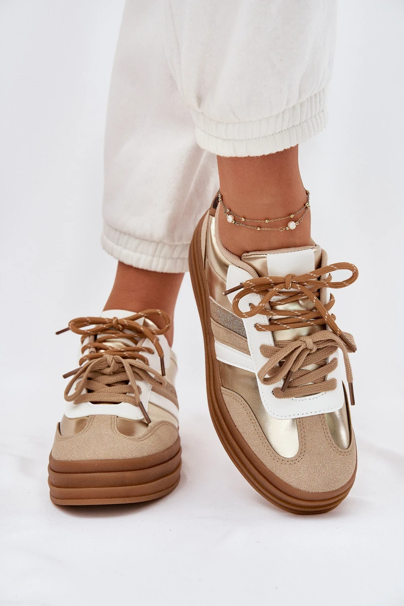 Dámské Tenisky Na Platformě S Dvojitým Šněrováním Leopardí Zlaté Klipy