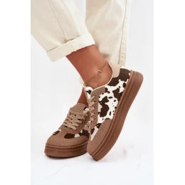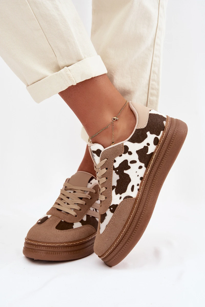 Dámské tenisky na platformě s flíčky tmavě béžové Denissa