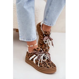 Dámské tenisky na platformě s ozdobami v panterovém vzoru hnědé Vinness
