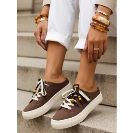 Dámské tenisky na platformě s ozdobnými korálky cappuccino ZY1409