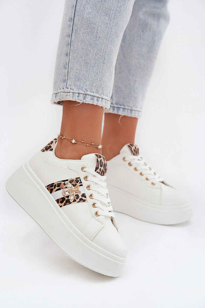 Dámské tenisky na platformě s přezkou Bílá leopardí vzor Palvessa