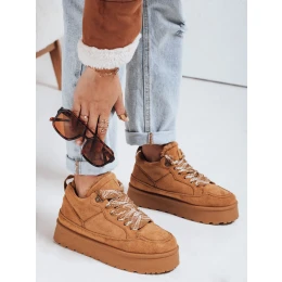 Dámské tenisky s kožešinou na platformě camel FashionStreet ZY1068