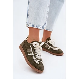 Stylové dámské tenisky s krajkovými vložkami jsou výjimečnou volbou pro ženy, které ocení módní vzhled a originální detaily. Kombinace sportovního střihu s jemnou krajkou dodává obuvi ženský a jemný charakter. Model se vyznačuje efektním šněrováním na stuhu, které nejenže zajišťuje dobré přizpůsobení, ale také tvoří módní akcent, který upoutá pozornost. Ideální obuv na každý den – pohodlná, stylová a skvěle se hodí k casual stylizacím s nádechem elegance. Při výběru velikosti se řiďte tabulkou velikostí.