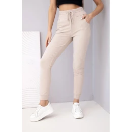 Dámské teplákové kalhoty s vysokým pasem a šňůrkou béžové