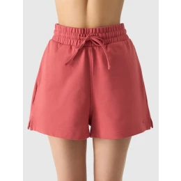 Dámské teplákové šortky jsou vyrobeny z pleteniny se střední gramáží 280 gsm, díky čemuž jsou měkké a prodyšnější. Šortky nemají podšívku, takže jsou lehčí. Na bocích jsou 2 otevřené kapsy. Elastický pás s vnějším nastavením na šňůrku.