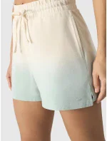 Dámské teplákové šortky jsou vyrobeny z pleteniny se střední gramáží 280 gsm, díky čemuž jsou měkké a prodyšnější. Šortky nemají podšívku, díky čemuž jsou lehčí a prodyšnější. Na bocích jsou 2 otevřené kapsy. Elastický pás s vnějším nastavením na šňůrku.