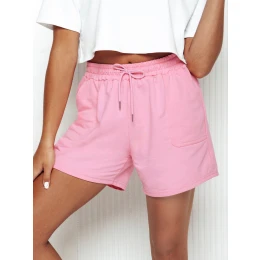 Dámské krátké šortky s bočními kapsami pro sportovní vzhled, elastickým pasem a šňůrkou v pase pro nastavení šířky.