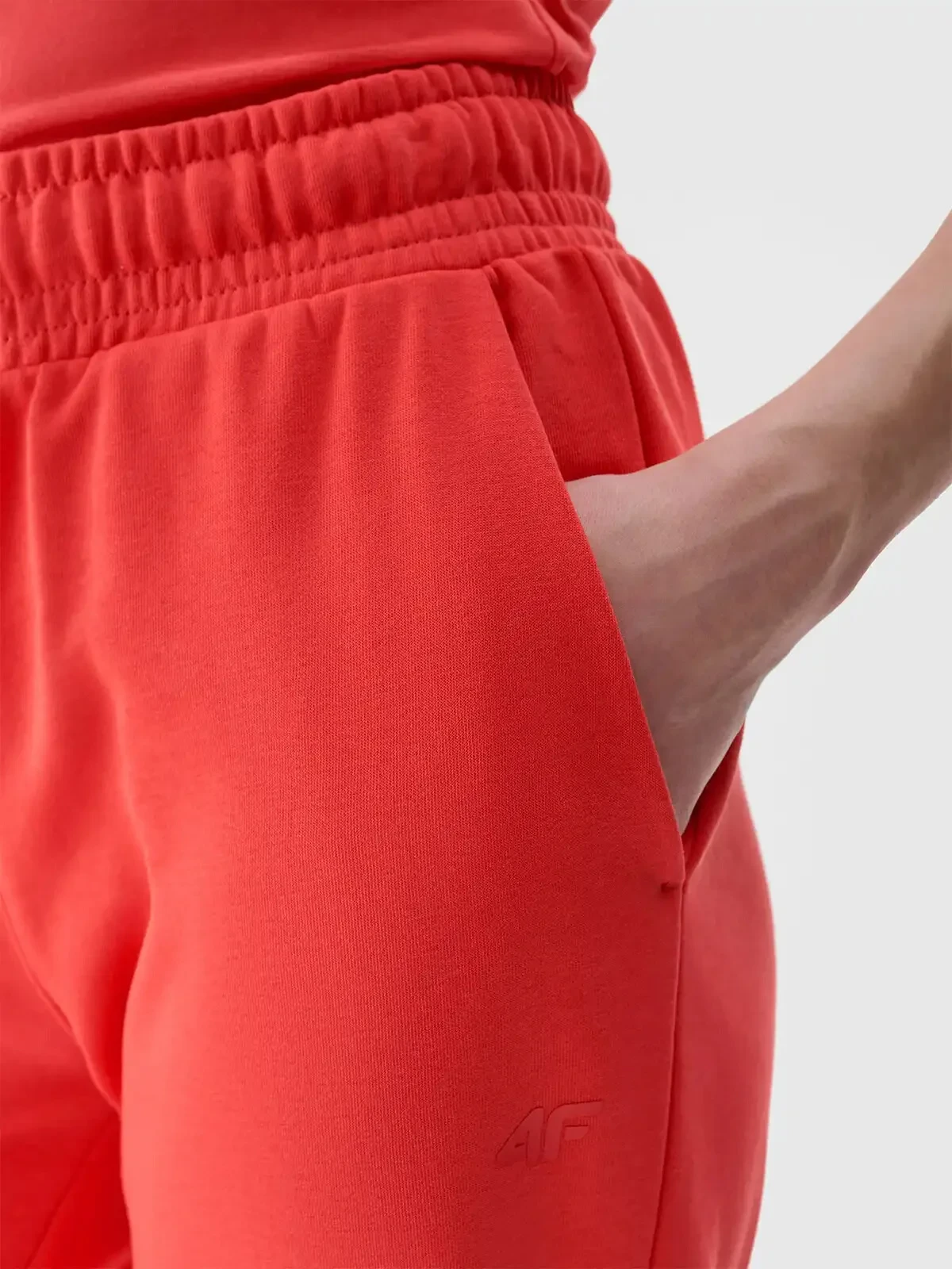 Dámské tepláky jsou vyrobeny z pleteniny se střední gramáží 280 gsm, díky čemuž jsou měkké a prodyšnější.