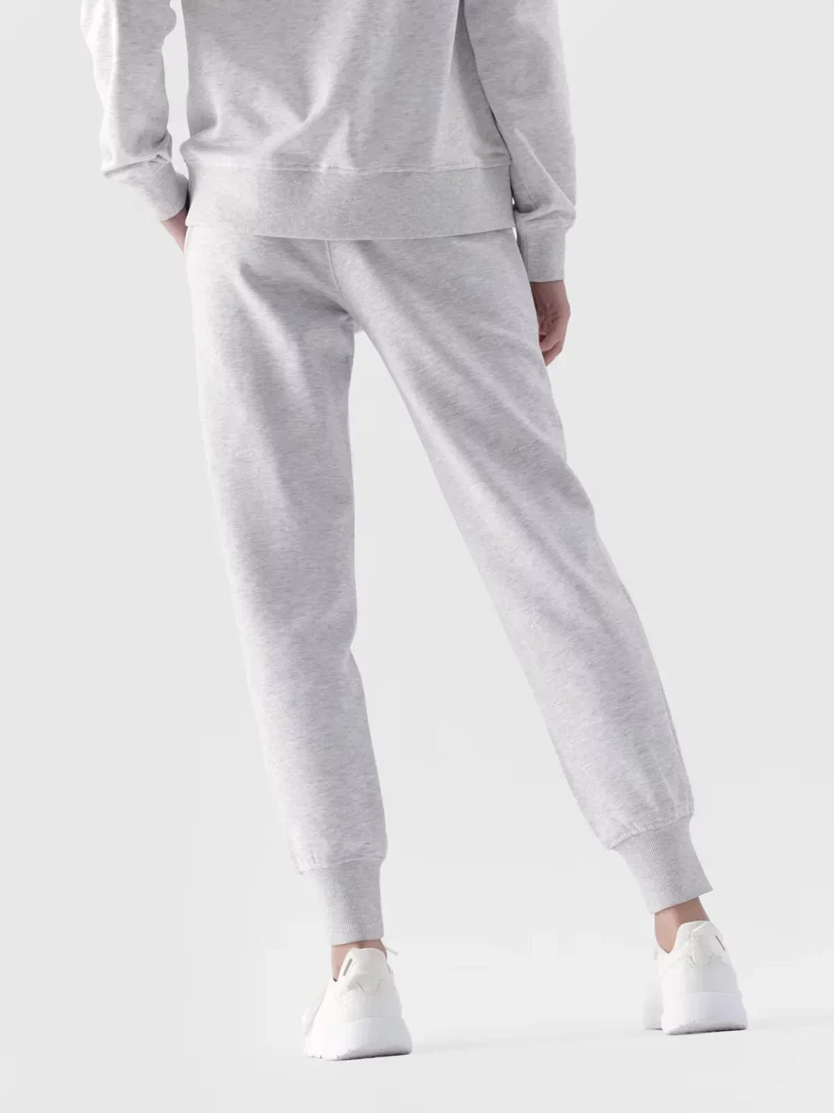 Dámské tepláky jsou vyrobeny z pleteniny se střední gramáží 280 gsm, díky čemuž jsou měkké a prodyšnější.