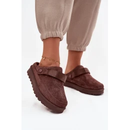 Dámské pantofle vyrobené z eko semiše. Umístěny na platformě. Vnitřek je zateplen příjemným kožíškem, což zajišťuje komfort v chladnějších dnech. Navíc mají pohyblivý pásek na suchý zip, který stabilizuje patu a umožňuje dokonalé přizpůsobení. Ideální na každodenní nošení, kombinují styl s funkčností. Při výběru velikosti se řiďte tabulkou velikostí.