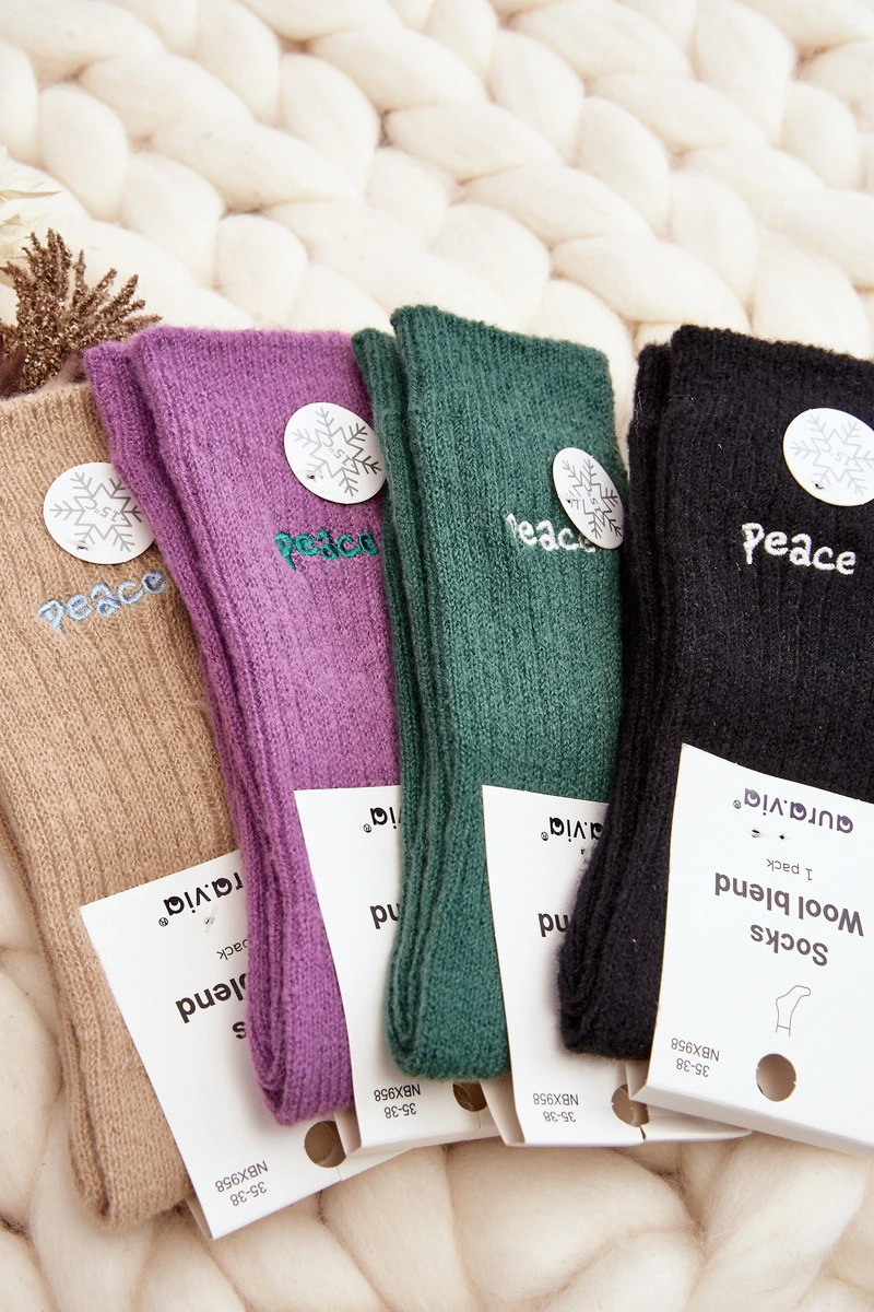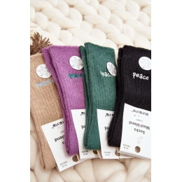 Teplé dámské ponožky ideální na mrazivé dny. Model s jemným nápisem. Lehký lem zajistí, že budou ideálně padnout k objemu nohy. Určitě byste je měla mít!