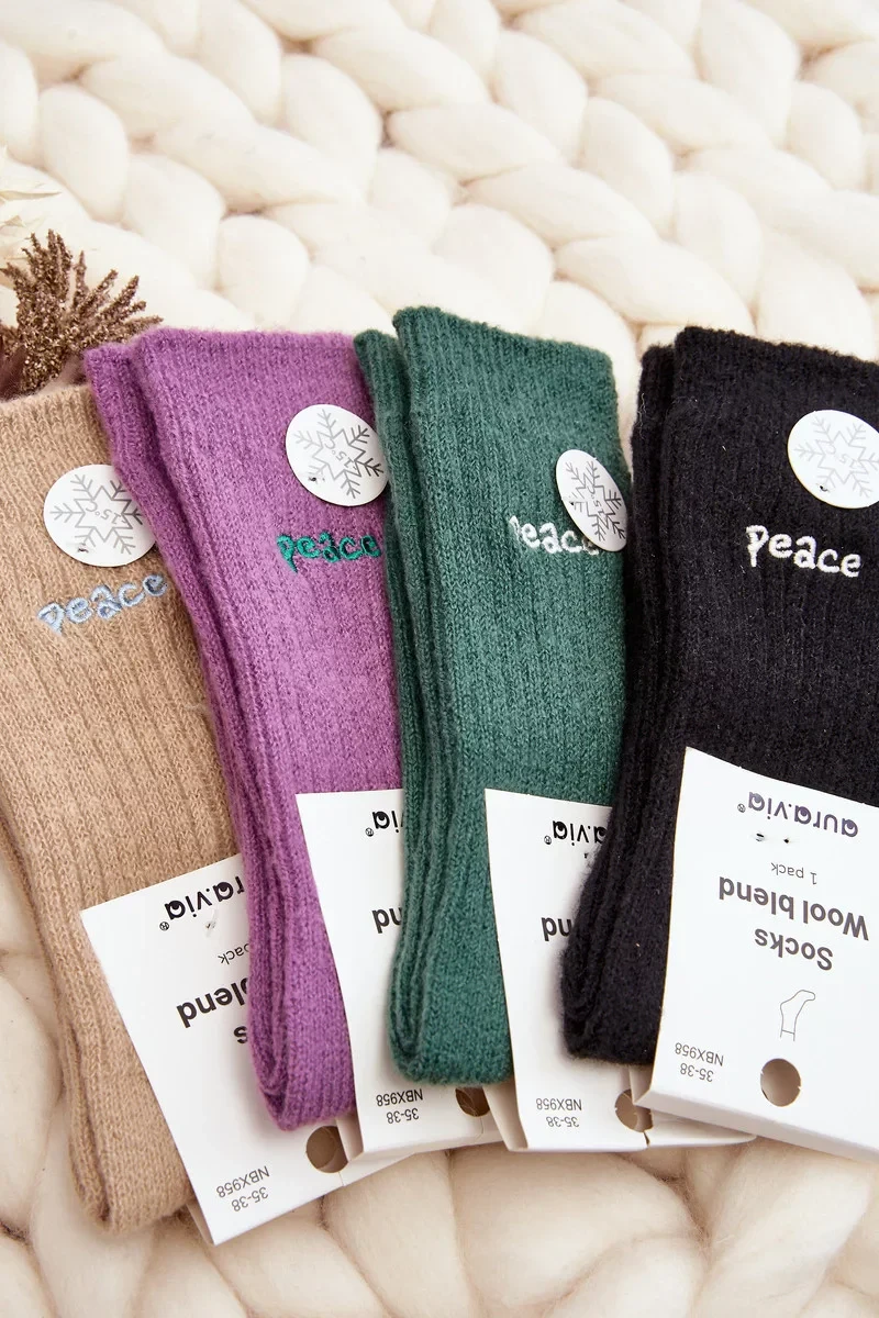 Teplé dámské ponožky, ideální do mrazivých dnů. Model s jemným nápisem. Díky lehké manžetě se perfektně přizpůsobí šířce nohy. Rozhodně byste je měli mít!