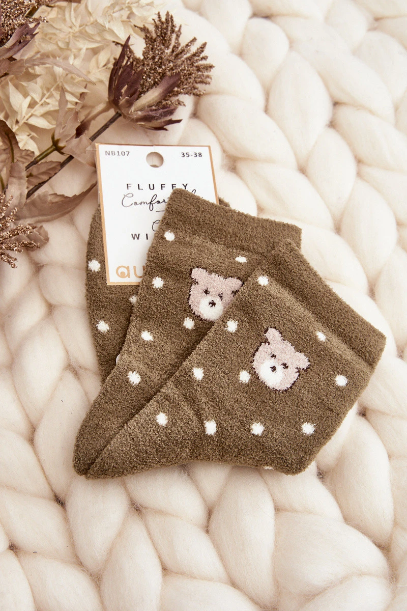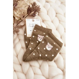 Dámské teplé ponožky v puntíkované s medvědem zelené