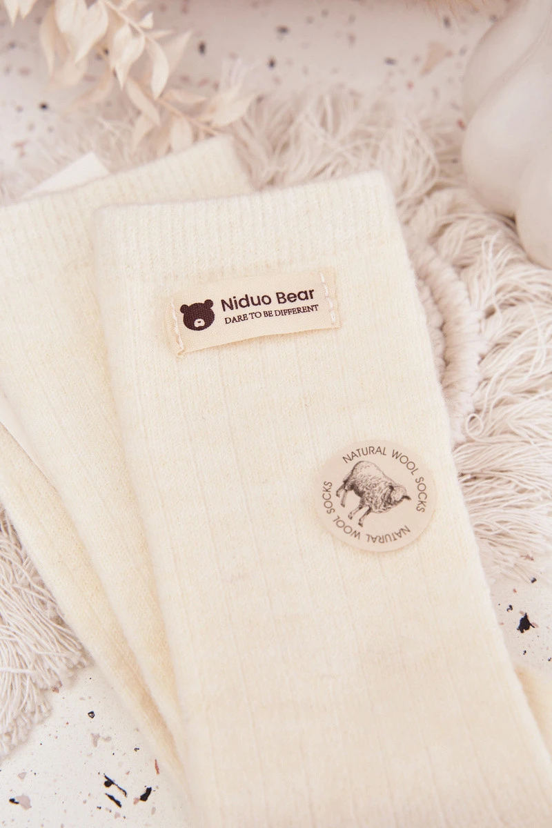 Dámské teplé vlněné ponožky s nášivkou – ecru
