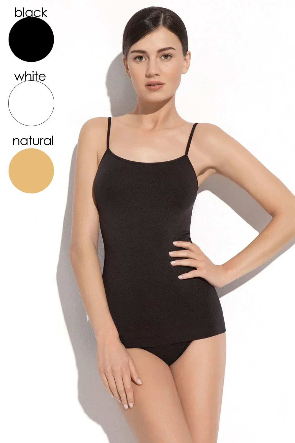 Dámské tílko 2k610 black GATTA - černá barva - z měkkého a prodyšného mikrovlákna - úzká ramínka - decentní kulatý výstřih - bez bočních švů - pohodlné a komfortní