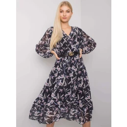Dámské vzorované šaty s volánem v námořnické modři.