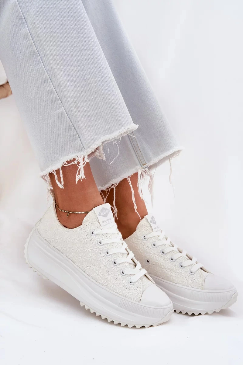 Dámské trampky s výšivkou na platformě Lee Cooper – bílé