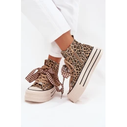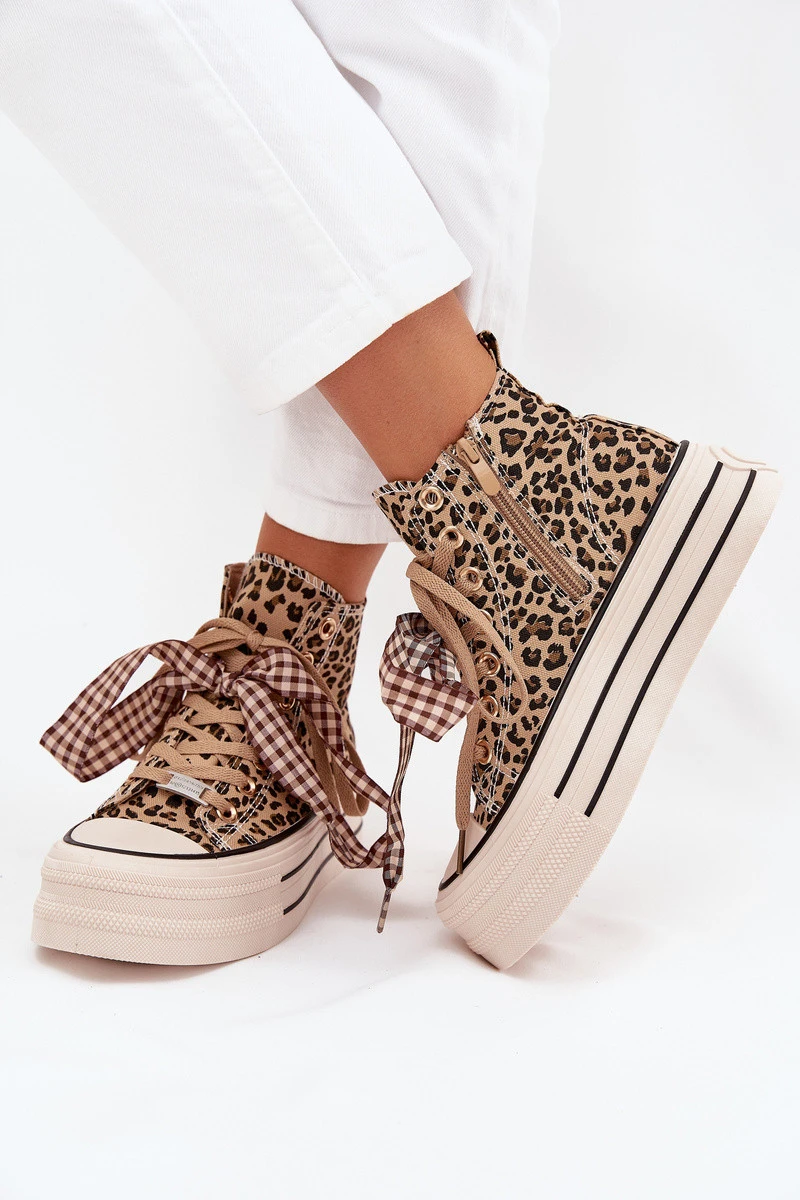 Dámské trampky se stuhou a zipem na platformě Mavara - panterka