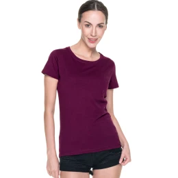 Damski t-shirt o klasycznym kroju z krótkim rękawem to must-have w każdej garderobie. Wykonany z wysokiej jakości dzianiny typu single jersey, wyróżnia się taliowanym fasonem, który podkreśla kobiecą sylwetkę. Dzięki praniu enzymatycznemu materiał jest wyjątkowo gładki, pozbawiony nierówności, a silikonowe wykończenie sprawia, że tkanina jest przyjemnie miękka w dotyku. Dekolt został wzmocniony dwuwarstwowym ściągaczem z dodatkiem elastanu, co zwiększa trwałość i odporność na deformacje. Dodatkowe wzmocnienia w postaci taśmy na karku i ramionach zwiększają wytrzymałość szwów, podobnie jak zastosowanie podwójnych, gęstych szwów z wysokogatunkowych nici. Koszulka posiada boczne szwy, które zapewniają stabilny fason i komfort noszenia. Model dostępny również w wersji męskiej